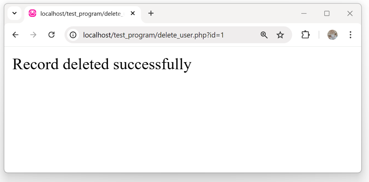 2. แสดงข้อความ "Record deleted successfully เมื่อลบข้อมูลได้สำเร็จ
